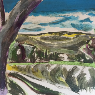 I asked my students to choose a landscape image from which to make an initially simple structured drawing. Then they cut out large tree images and tested them against their landscape to see how and where they sat best. From this they made a drawing which amalgamated both the landscape and the tree as a dynamic foreground reference. The results are fabulous.