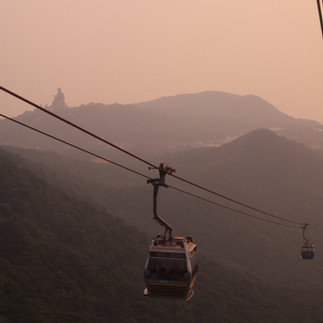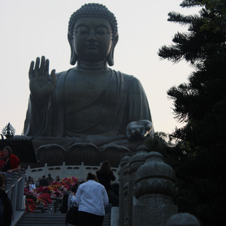 ...and after nice lunch on the airport island (Lantau), Jack took me on the cable car up to the Lantau giant Buddha. The flight had been re-routed from it's normal path (over Taiwan) to go across China mainland and down to Hong Kong - airforce manoeuvers over Taiwan - I had wondered what route we'd take after hearing the news, I'd feared delays!
