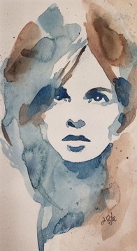 In the last session some of my students worked on tonal watercolour paintings of figures in their context with very successful results. In this session I'm asking my students to do the same with the image of a face using a tonal mix of a blue and a brown colour.
